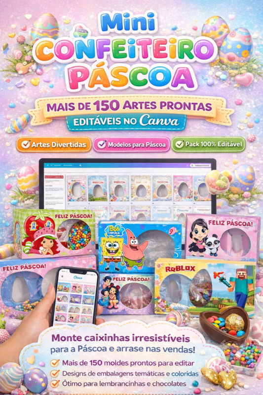 Mini Confeiteiro Páscoa – +150 Artes Editáveis no Canva