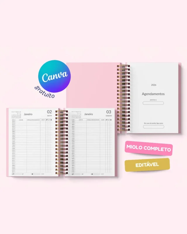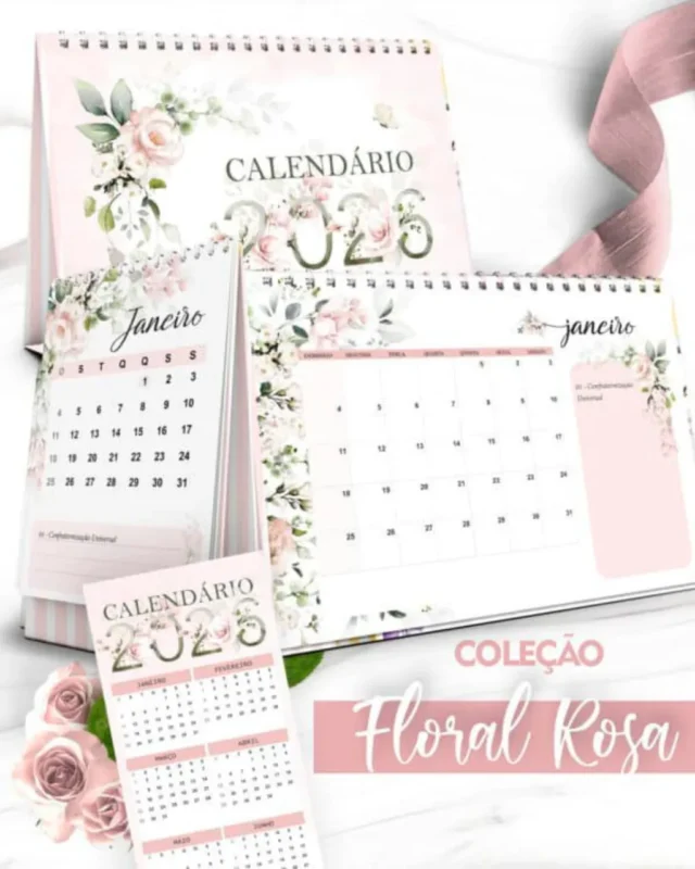 Kit Calendário 2026 – Coleção Floral Rosa – Bicho Papel