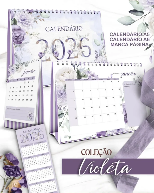 Kit Calendário 2026 – Coleção Violeta – Bicho Papel