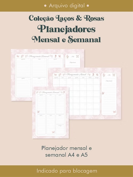 Planejadores Mensal e Semanal Coleção Laços & Rosas