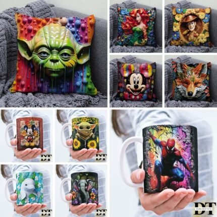 Combo Estampas Canecas e Almofadas 3D