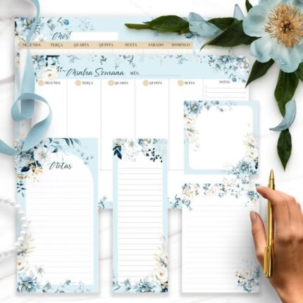 Kit Desk Planners e Bloquinhos Coleção Floral Azul + Brinde