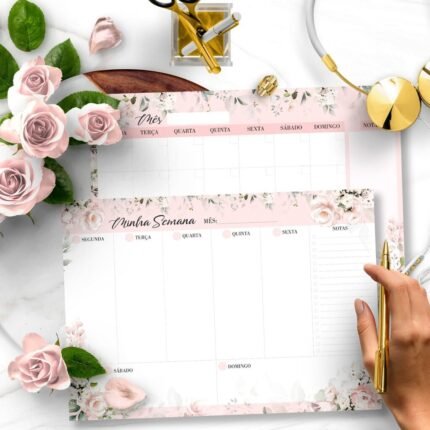 Kit Desk Planners e Bloquinhos Coleção Floral Rosa + Brinde