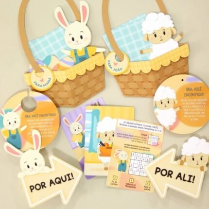 Caça aos Ovos Coelho e Caça ao Tesouro Cristão Cordeiro