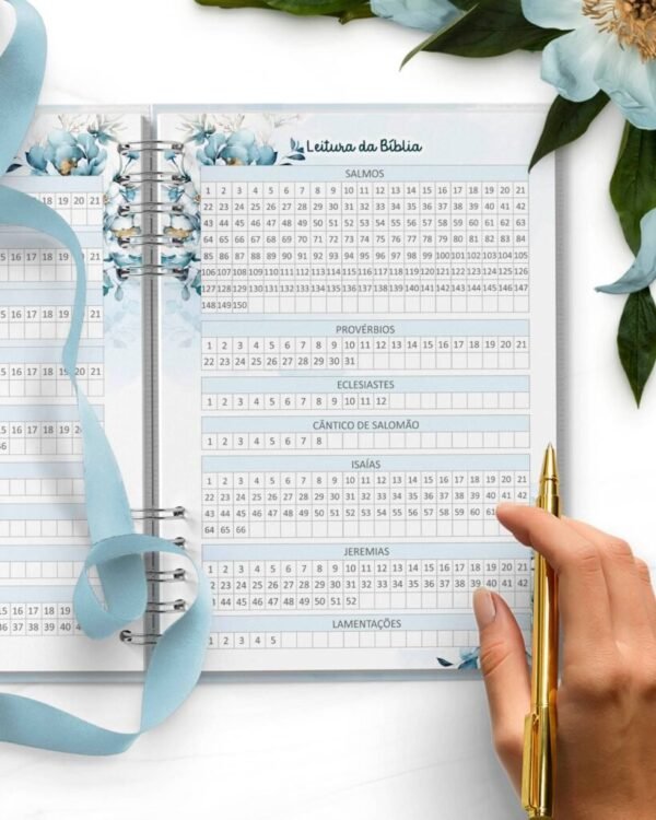 Combo Devocional Leitura da Bíblia 365 dias Católica Evangélica Leitura Livre Floral Azul