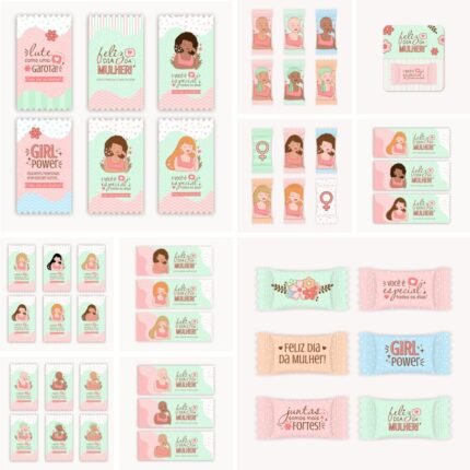 Kit Printables Mulheres – Balinha/chocolate 90g/kitkat/brinco/elástico