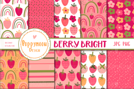 Papel Digital Tema Morango brilhante