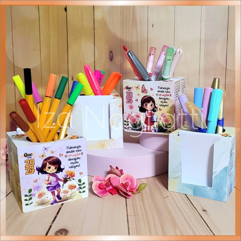 4 Modelos de Porta Caneta e Porta Bloquinho com Calendário 2024
