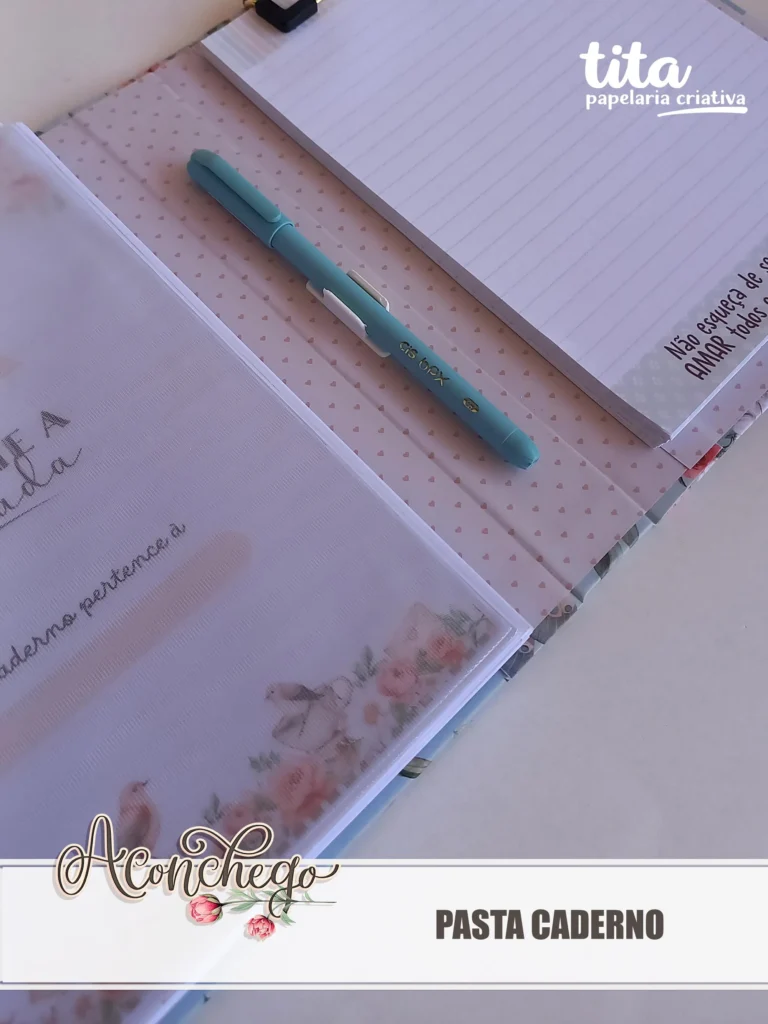 - Pasta Caderno A5 – incluso o miolo de caderno e miolo do bloco
