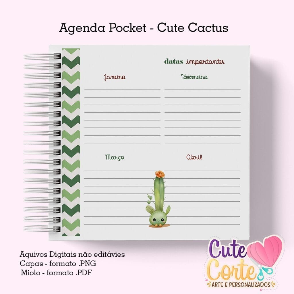 Agenda Pocket ( 4 capas/1miolo) – Cactus Cute 1DPP
