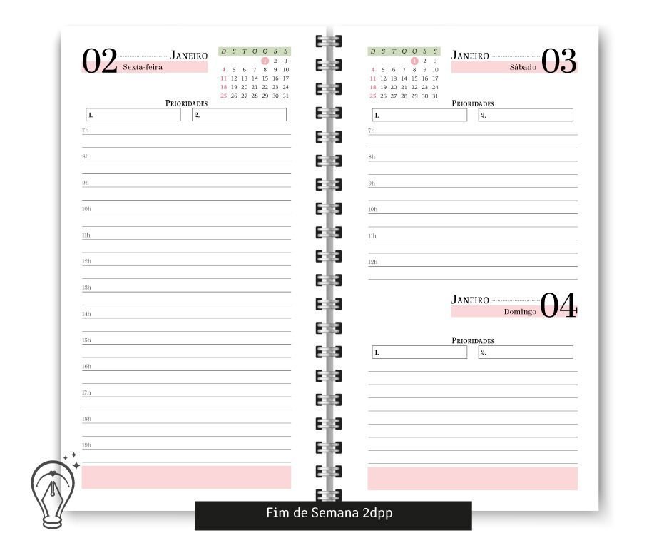 •  Fim de Semana 2dpp (Segunda a Sexta 1 dia por página e Sábado e Domingo mesma página)