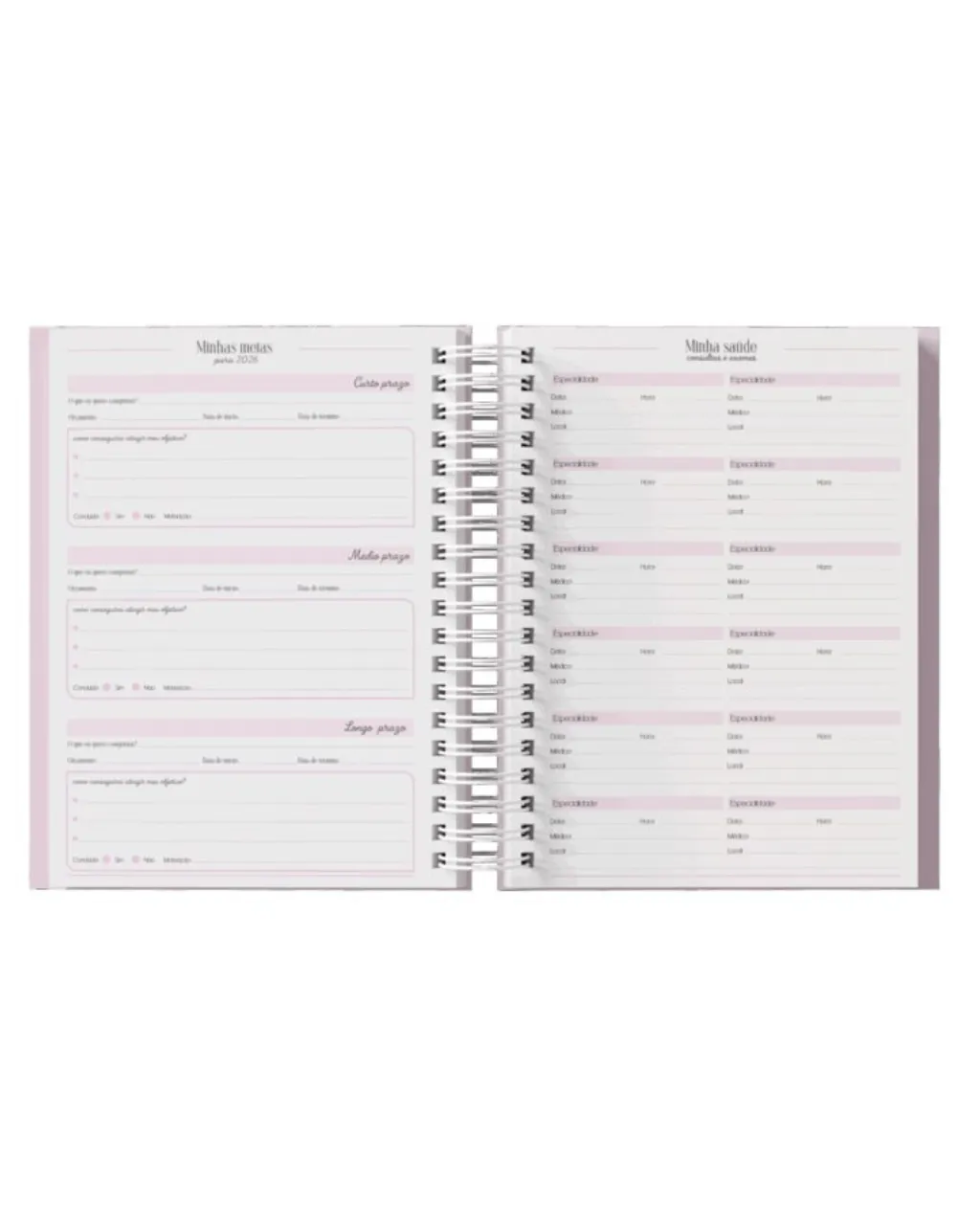 - Espaços para anotações, controle de horários e observações importantes.