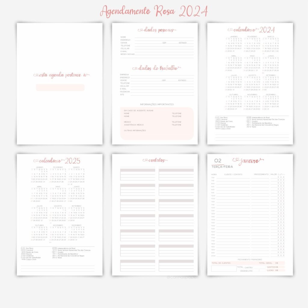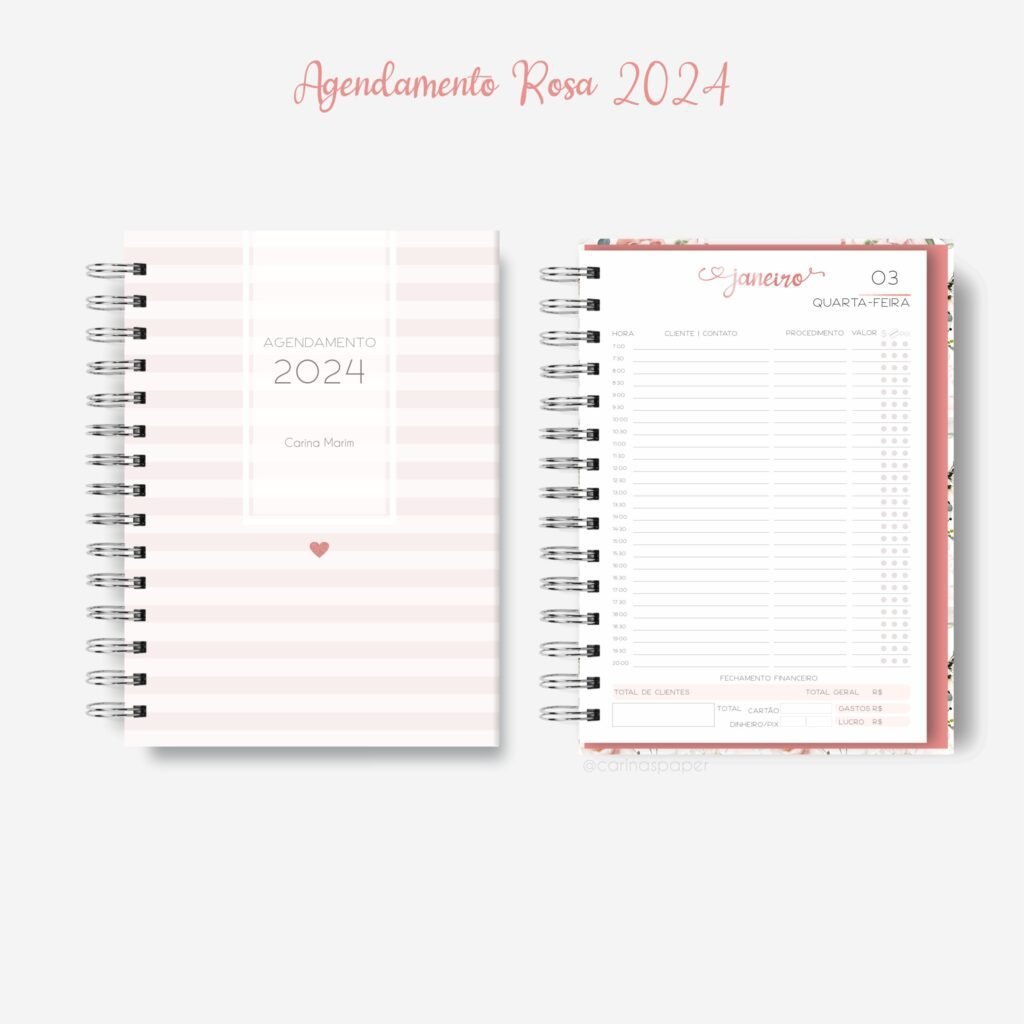 Agendamento Rosa A5 com 4 Capas Datado 2024
