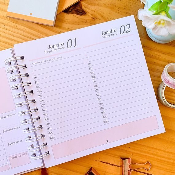 - Miolo 1 dia por página com horas (sábado e domingos juntos);