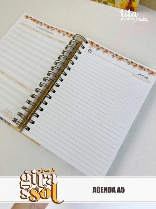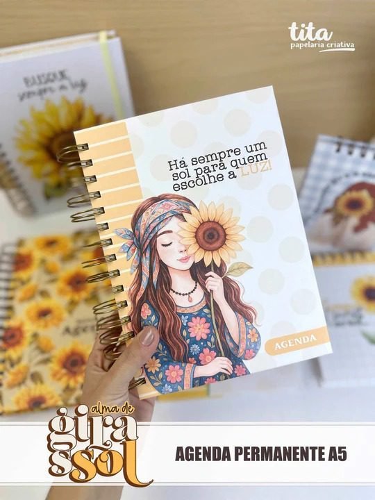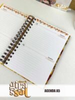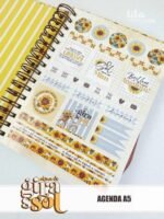 - Agenda A5 Permanente – miolo 1 e 2 dias por folha, marcadores, adesivos, bolsinho e várias opções de capa.
