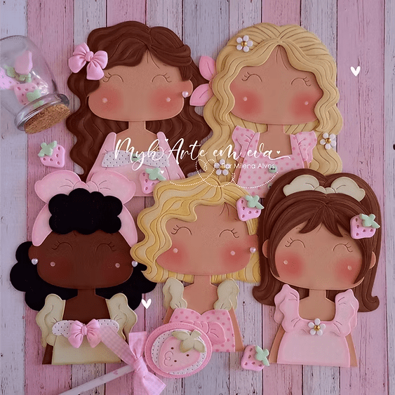 Contém : 5 moldes de meninas ( Medida de cada peça pronta variam de 16 a 17,5cm)