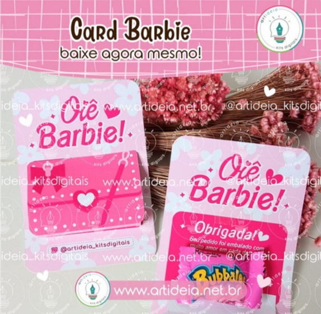 - Duas Artes Bolsinha Barbie e Borboleta com espaço para rede social no formato PNG.