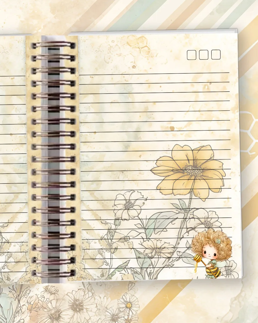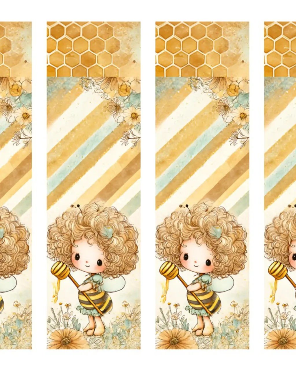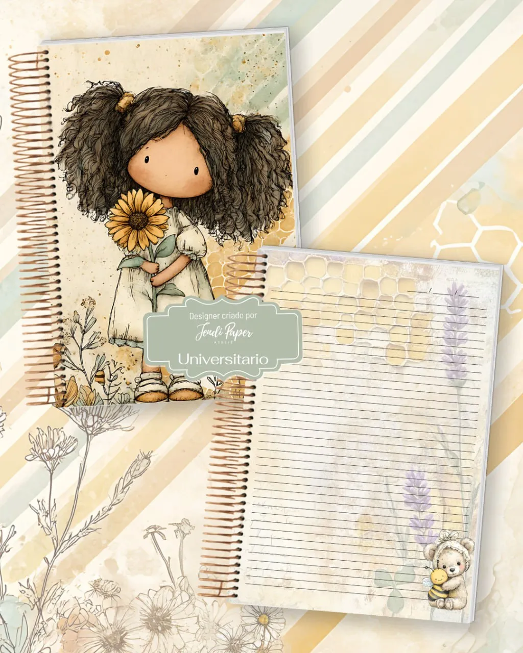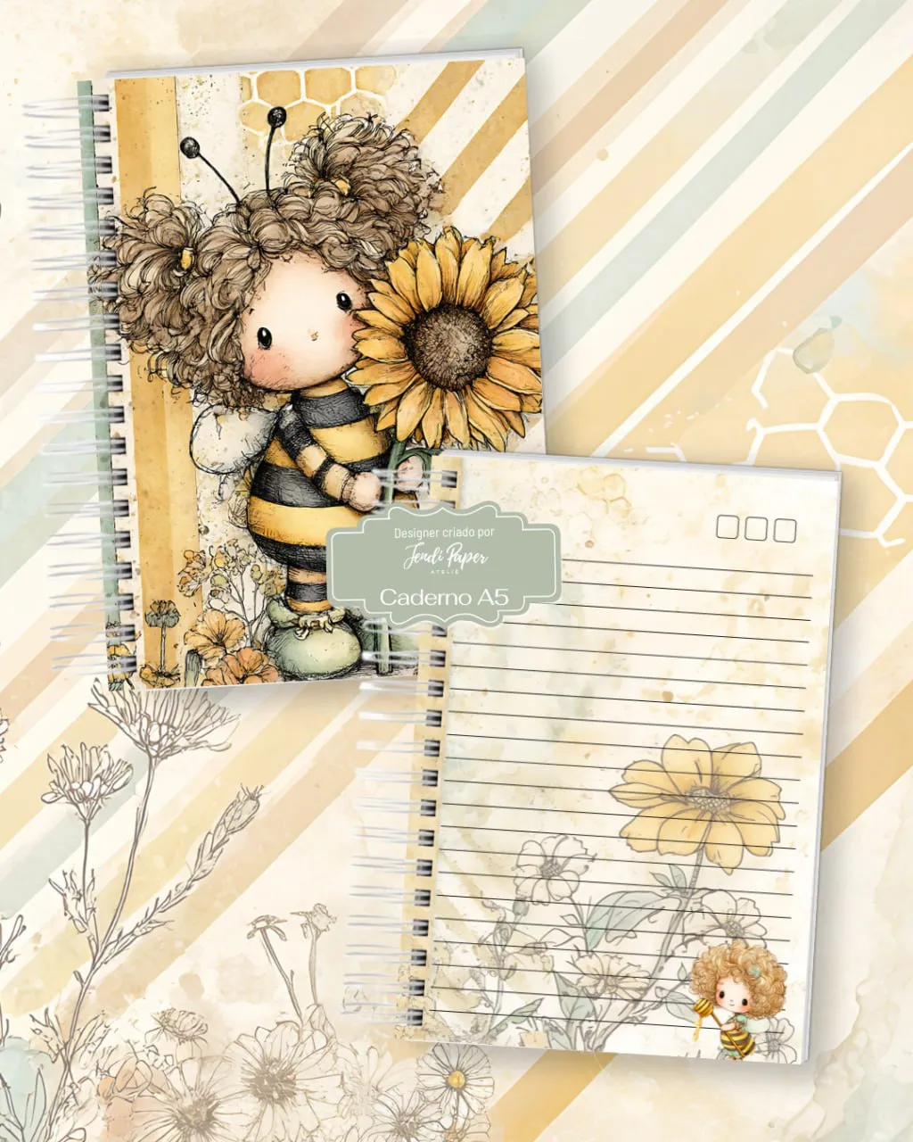 - Elementos ilustrativos em alta qualidade (abelhas, flores, colmeias e detalhes delicados).