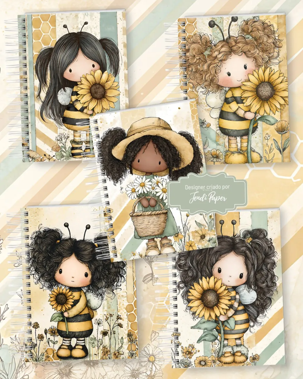 A Coleção Abelha Fofa – Jendi Paper é um kit digital encantador, criado para quem ama papelaria personalizada delicada e divertida. Com artes exclusivas, essa coleção é perfeita para transformar cadernos, planners, lembrancinhas e diversos produtos em peças únicas e cheias de charme.