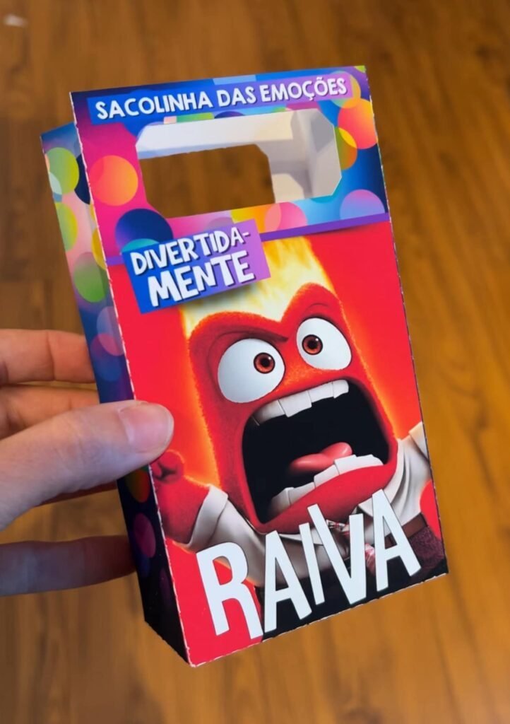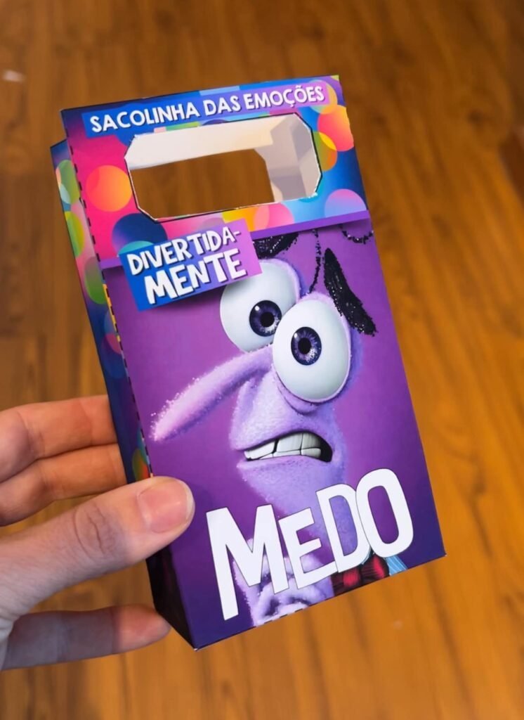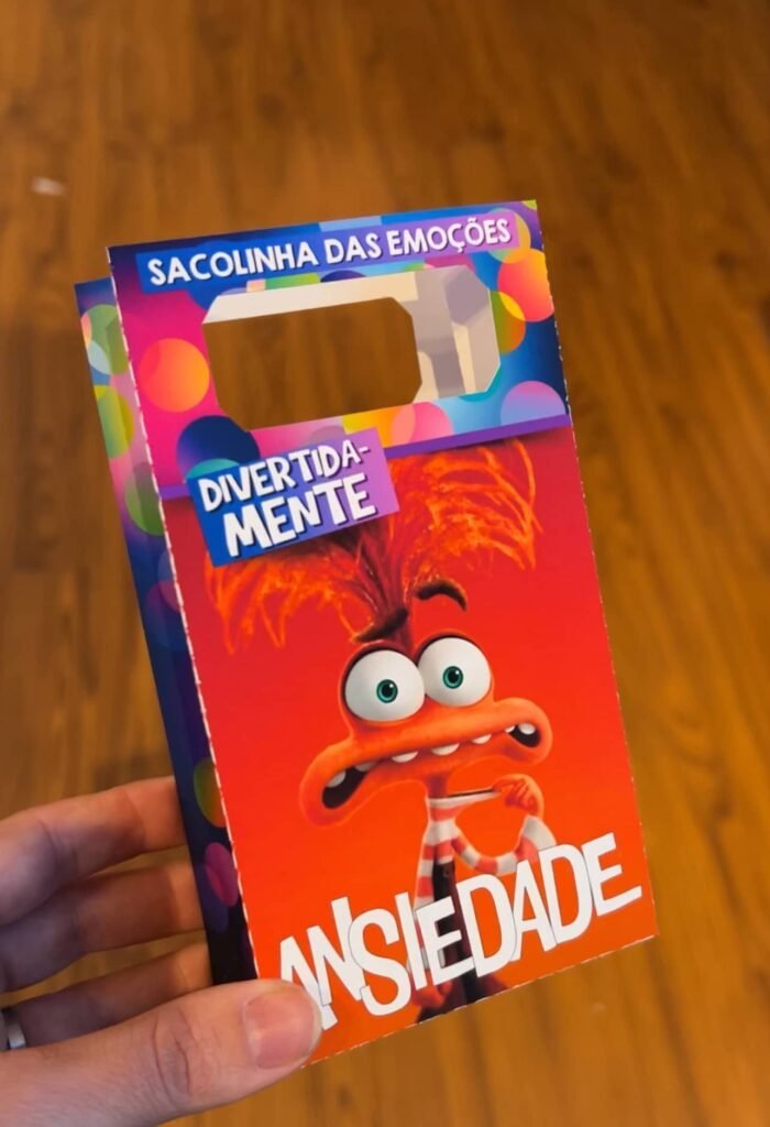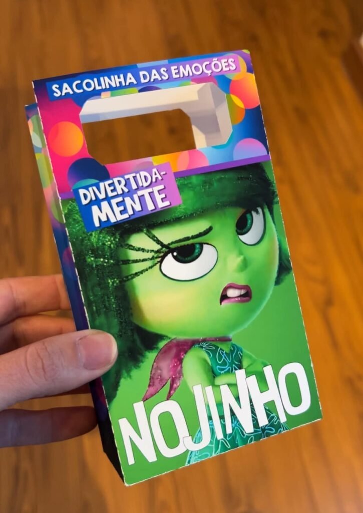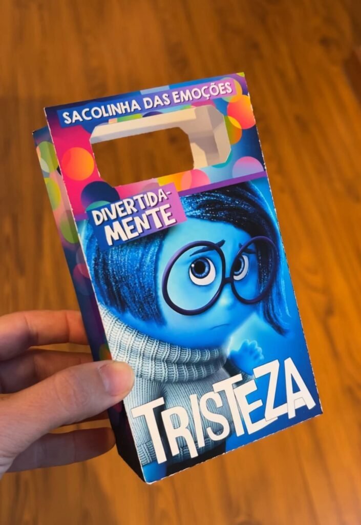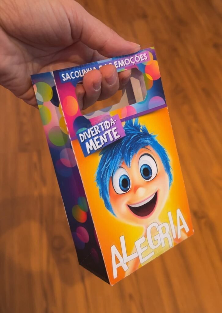 n* UMA SACOLINHA PARA CADA EMOÇÃO: 01 ALEGRIA, 01 ANSIEDADE, 01 NOJINHO, 01 INVEJA, 01 MEDO, 01 TRISTEZA, 01 TÉDIO, 01 VERGONHA e 01 RAIA + 01 SACOLINHA COM TODOS OS PERSONAGENS.