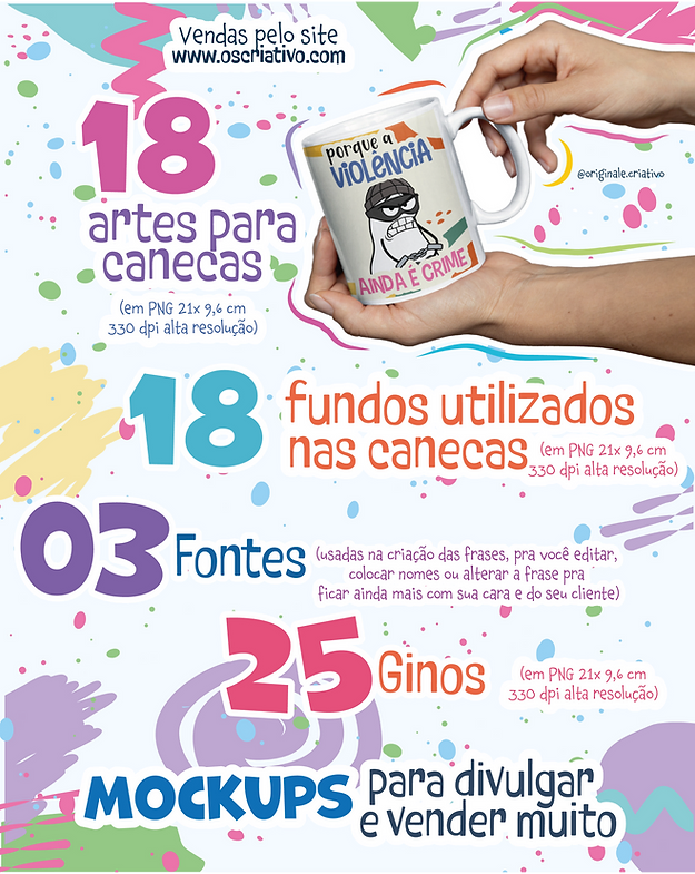 - ☕ 18 Artes para canecas em JPG alta qualidade 210x95mm;