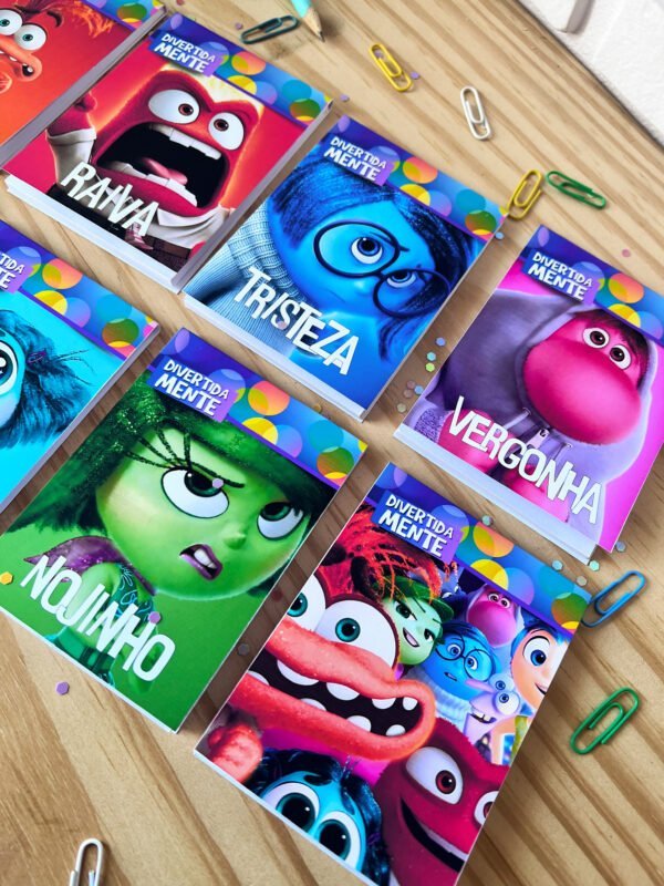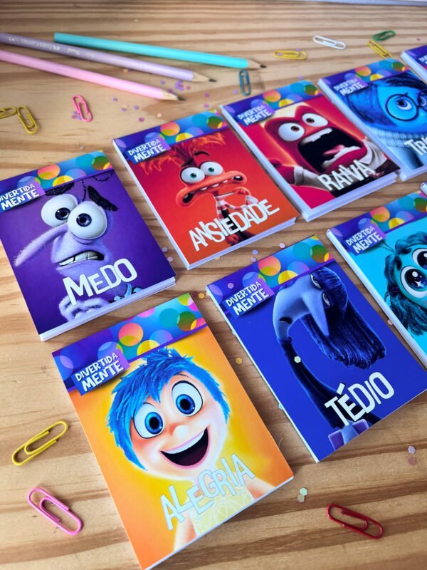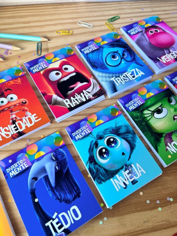 * UM BLOQUINHO PARA CADA EMOÇÃO: 01 ALEGRIA, 01 ANSIEDADE, 01 NOJINHO, 01 INVEJA, 01 MEDO, 01 TRISTEZA, 01 TÉDIO, 01 VERGONHA e 01 RAIVA + 01 BLOQUINHO COM TODOS OS PERSONAGENS.