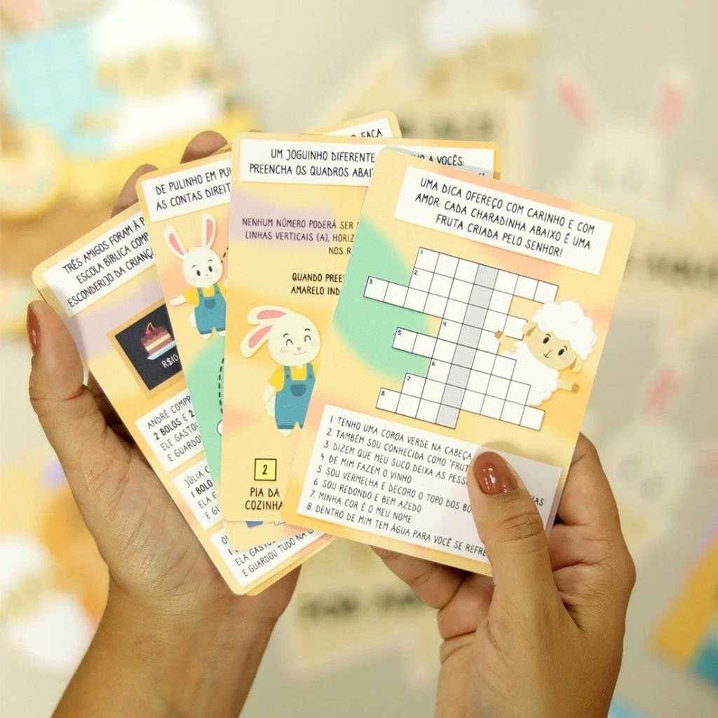 ▪ Avançado: pistas em forma de enigma, recomendado para crianças maiores, já alfabetizadas