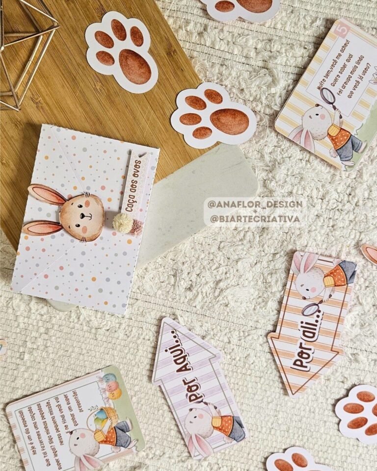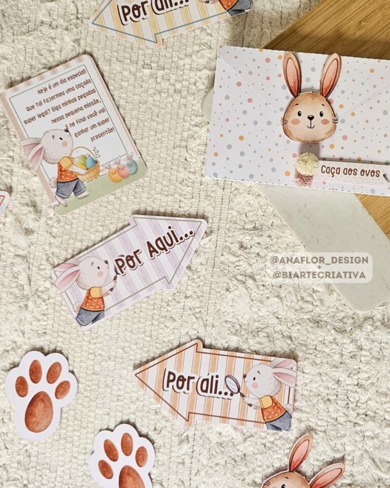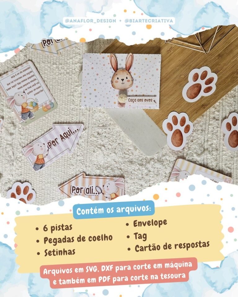 Contém arquivos para impressão e recorte do Caça aos Ovos, inclui: