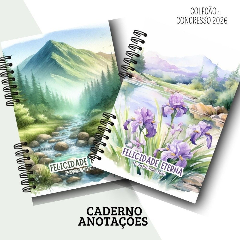 KIT DIGITAL CADERNO PARA ANOTAÇÕES – CONGRESSO 2026 – FELICIDADE ETERNA Este Kit Contém: 6 modelos de capas com o