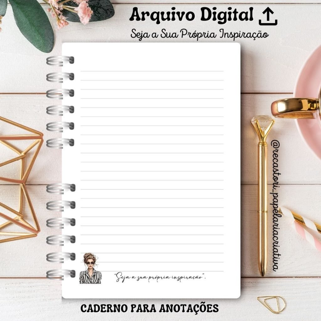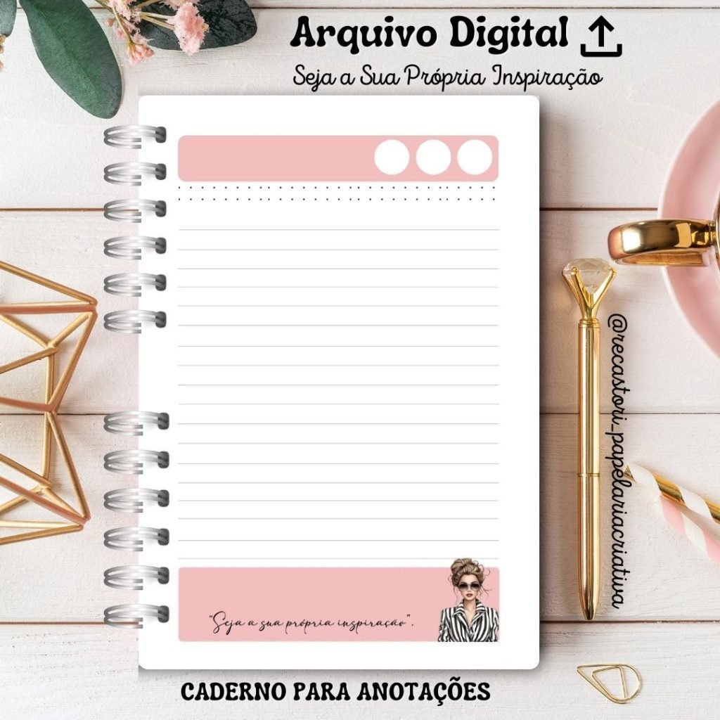 Arquivo Digital Caderno de Anotações ( Seja a Sua Própria Inspiração) Floral Rosa