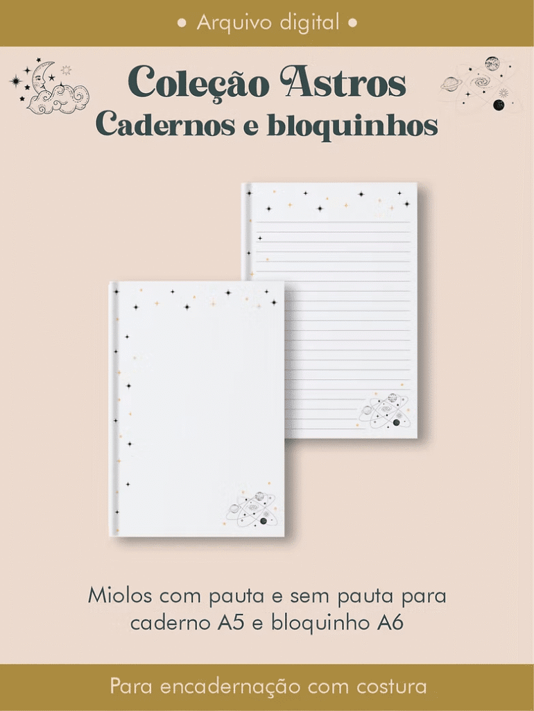 Caderno e bloquinho Costura Coleção Astros (Perfeito Miolo)