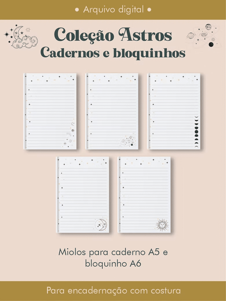 Caderno e bloquinho Costura Coleção Astros (Perfeito Miolo)