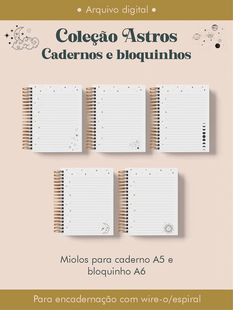 Caderno e bloquinho wire-o Coleção Astros (Perfeito Miolo)