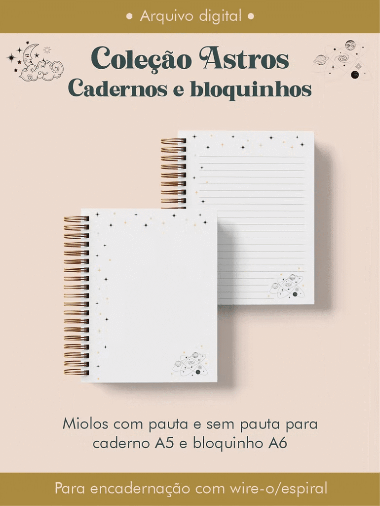 Caderno e bloquinho wire-o Coleção Astros (Perfeito Miolo)