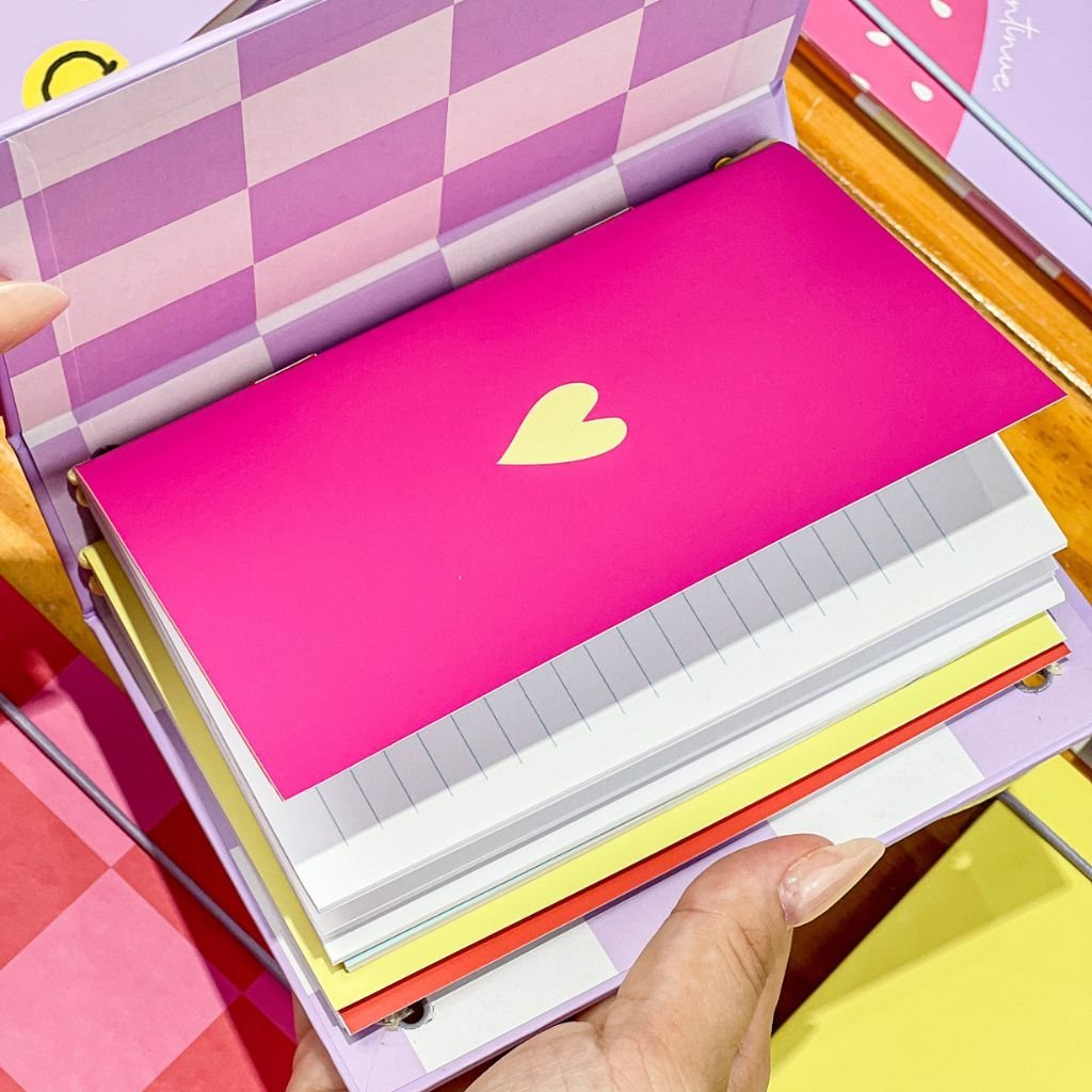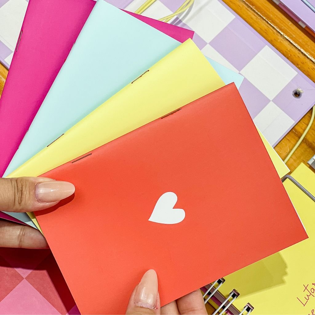 PROJETO MODULAR EM A6 – 03 modelos de CADERNINHOS BROCHURA: linhas. quadriculados e pontilhados e capas. MARCADORES, CARDS MENSAGEM E ADESIVOS LACRES 03 modelos de cada.