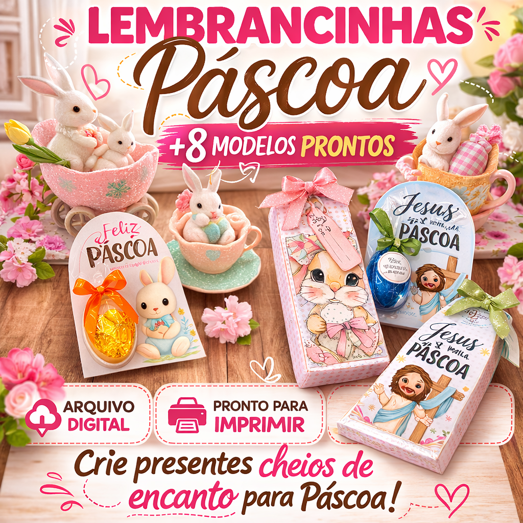 Encante sua Páscoa com lembrancinhas delicadas, criativas e prontas para imprimir. Esse arquivo digital é ideal para quem deseja produzir mimos personalizados com mais praticidade e apresentar peças que chamam atenção pela beleza e pelo capricho.