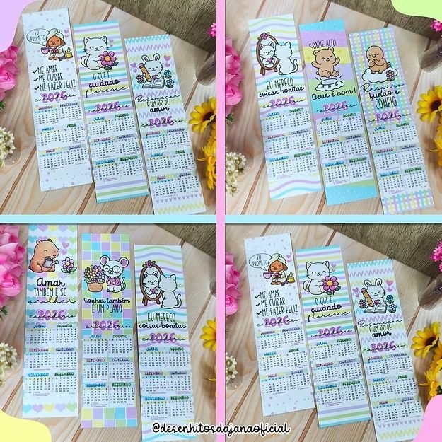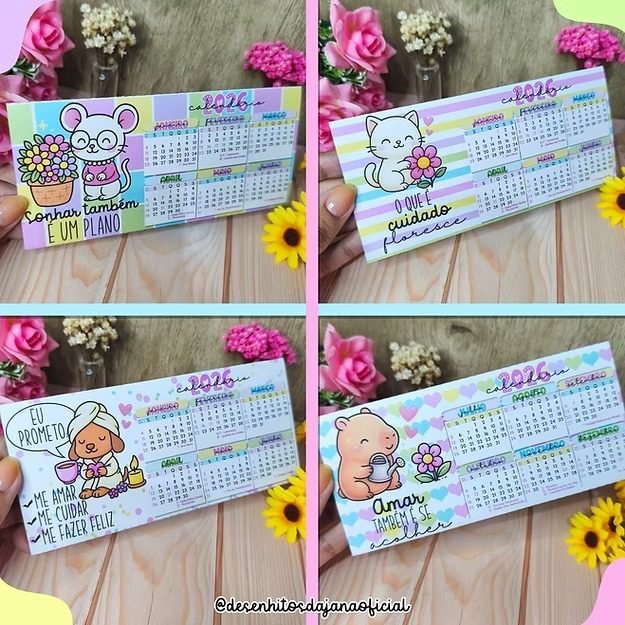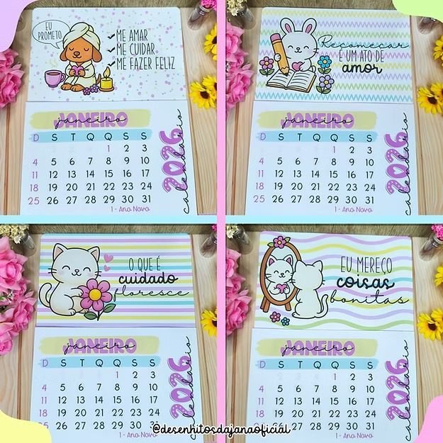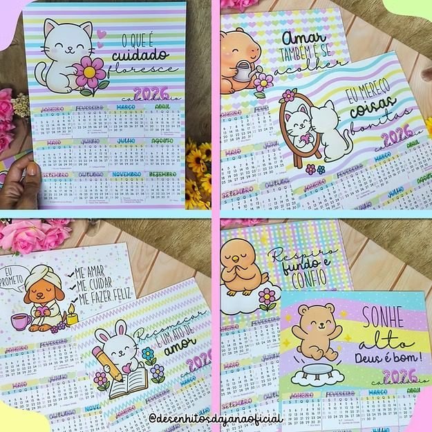 Calendários fofos e coloridos 2026 (Desenhitos da Jana)