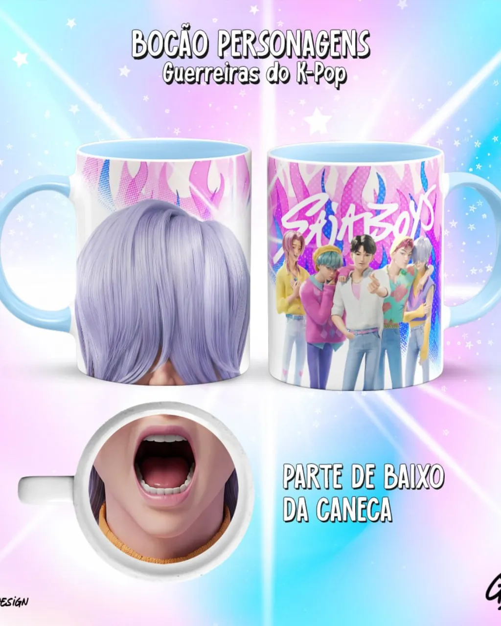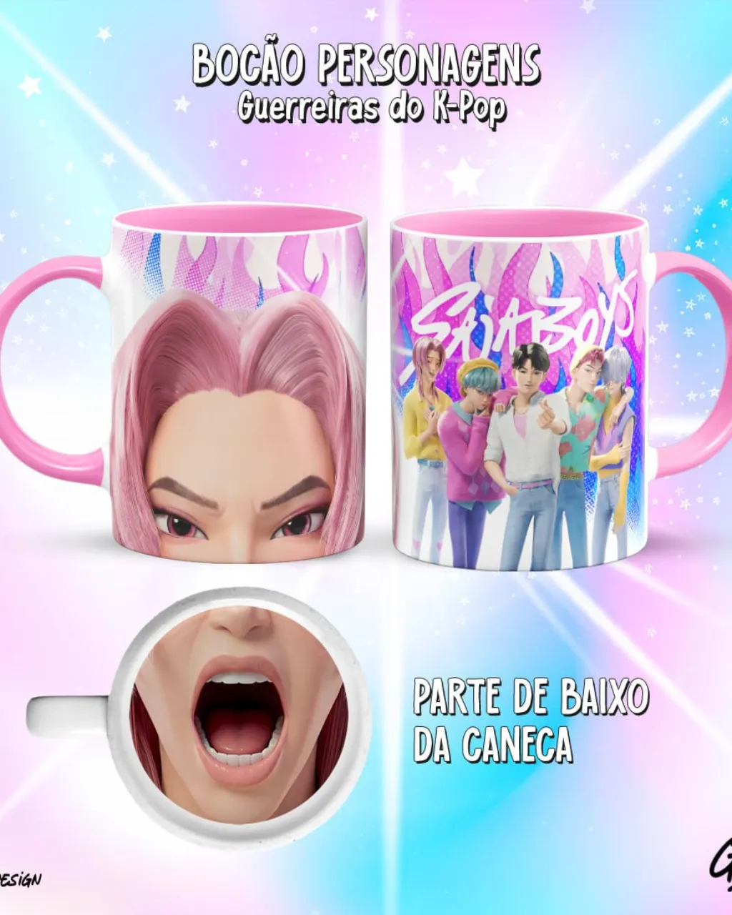 - Canecas personalizadas da coleção Bocão Guerreiras de K-Pop.
