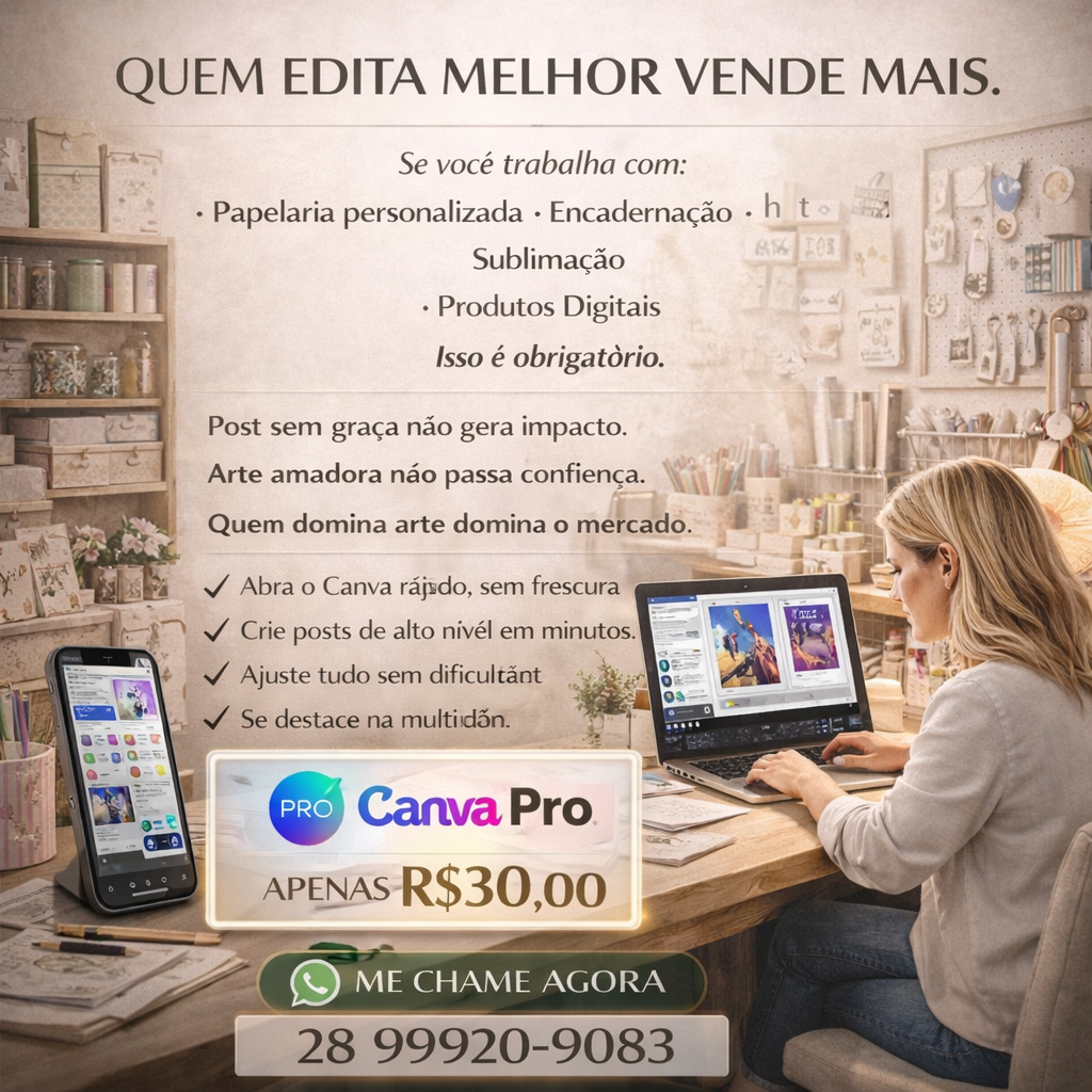 👉 Com o Canva Pro, você não apenas cria artes, você cria experiências visuais que encantam e vendem. 🌟