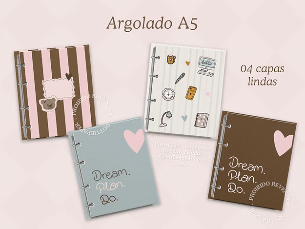 n▫️04 opções de estampa argolado A5 (inclui gabarito para facilitar a montagem)