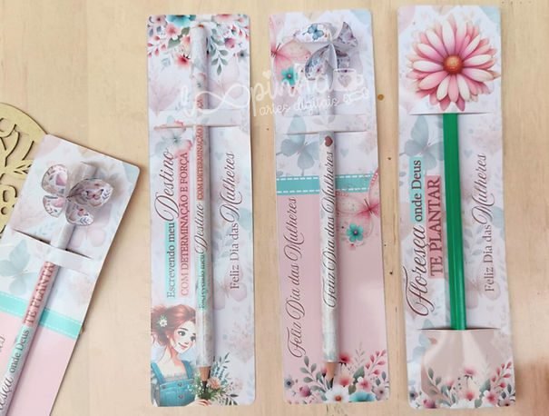- Card de lápis: 4 artes, 19cm x 5cm (cabem 5/folha A4);