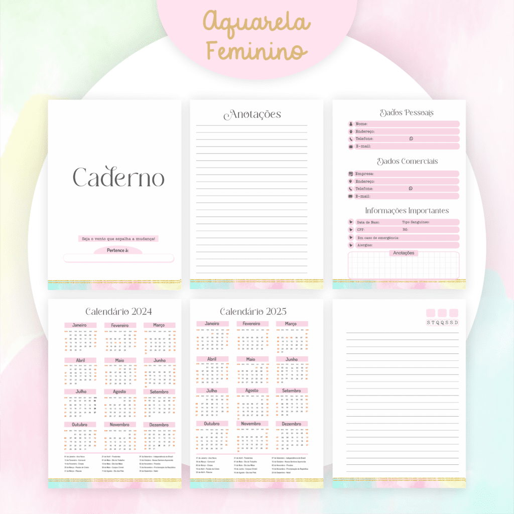 Coleção Aquarela Feminino – 5 Modelos (Pamella)