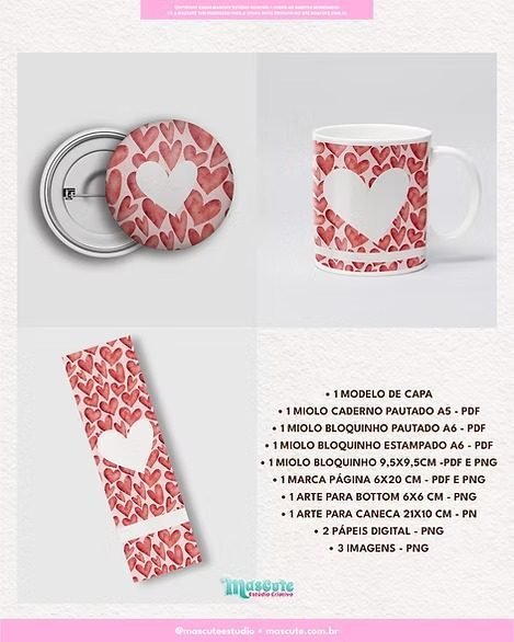 Coleção Corações Aquarela – Kit de Encadernação