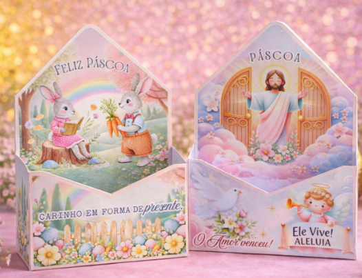 - Temas Diversificados: Atenda clientes que procuram tanto o tema clássico do coelhinho quanto a celebração da Páscoa Cristã.