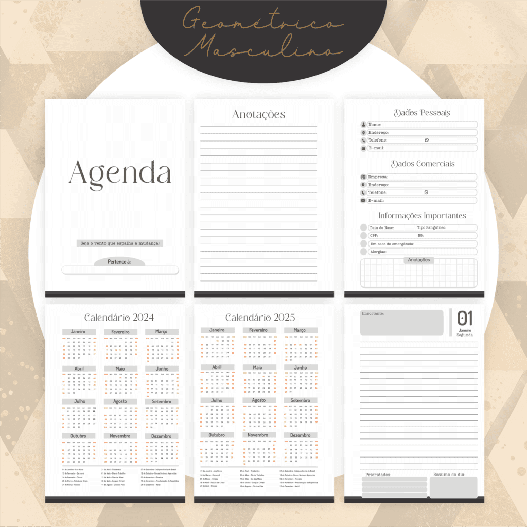 Coleção Geométrico Masculino – 5 Modelos (Pamella)