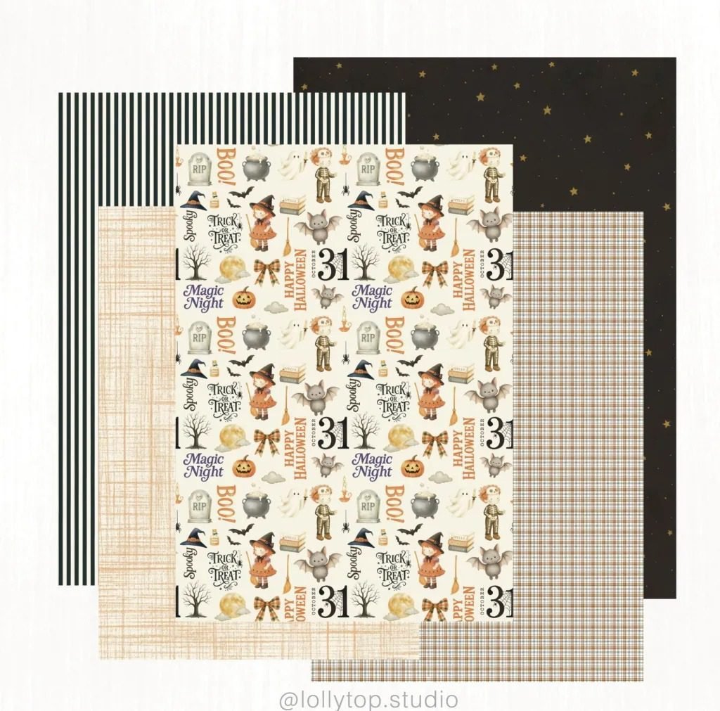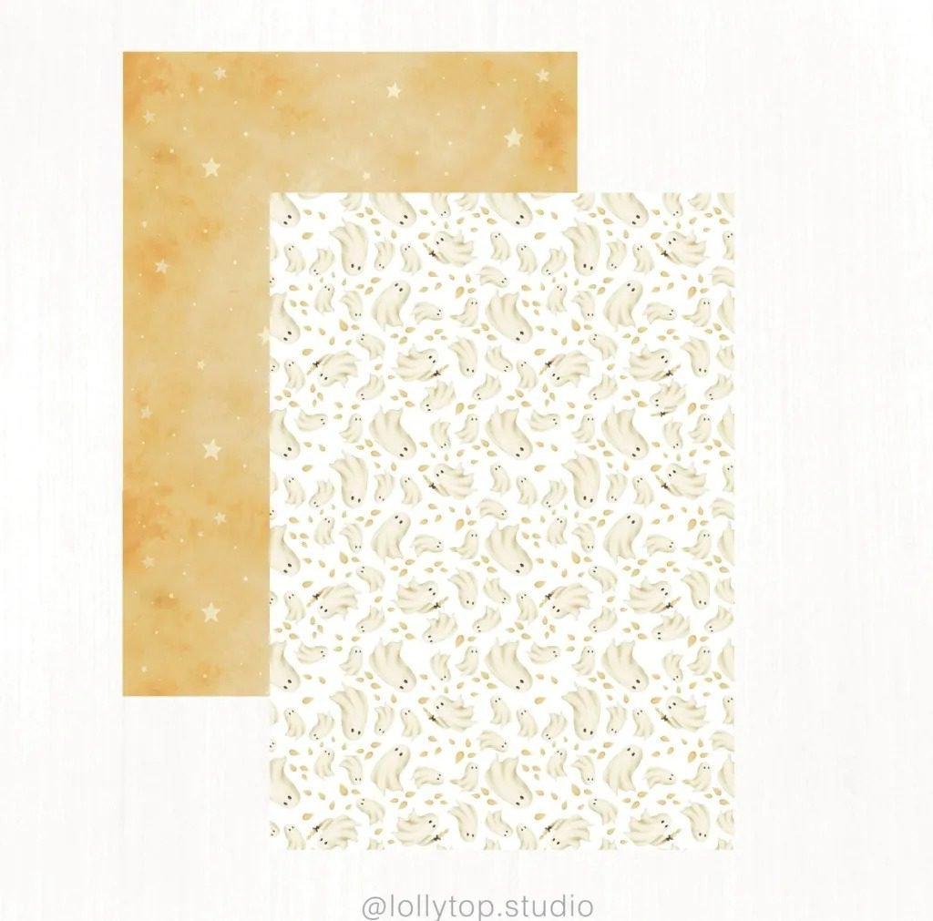 nCelebre o encanto do Halloween com esta coleção exclusiva, composta por 50 ilustrações em aquarela suave e 30 papéis digitais pintados à mão.