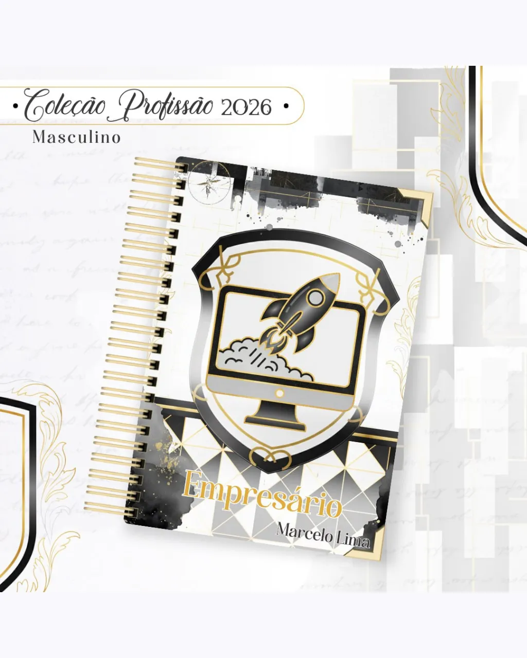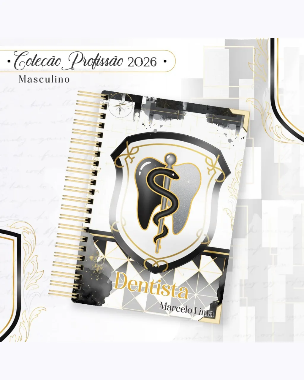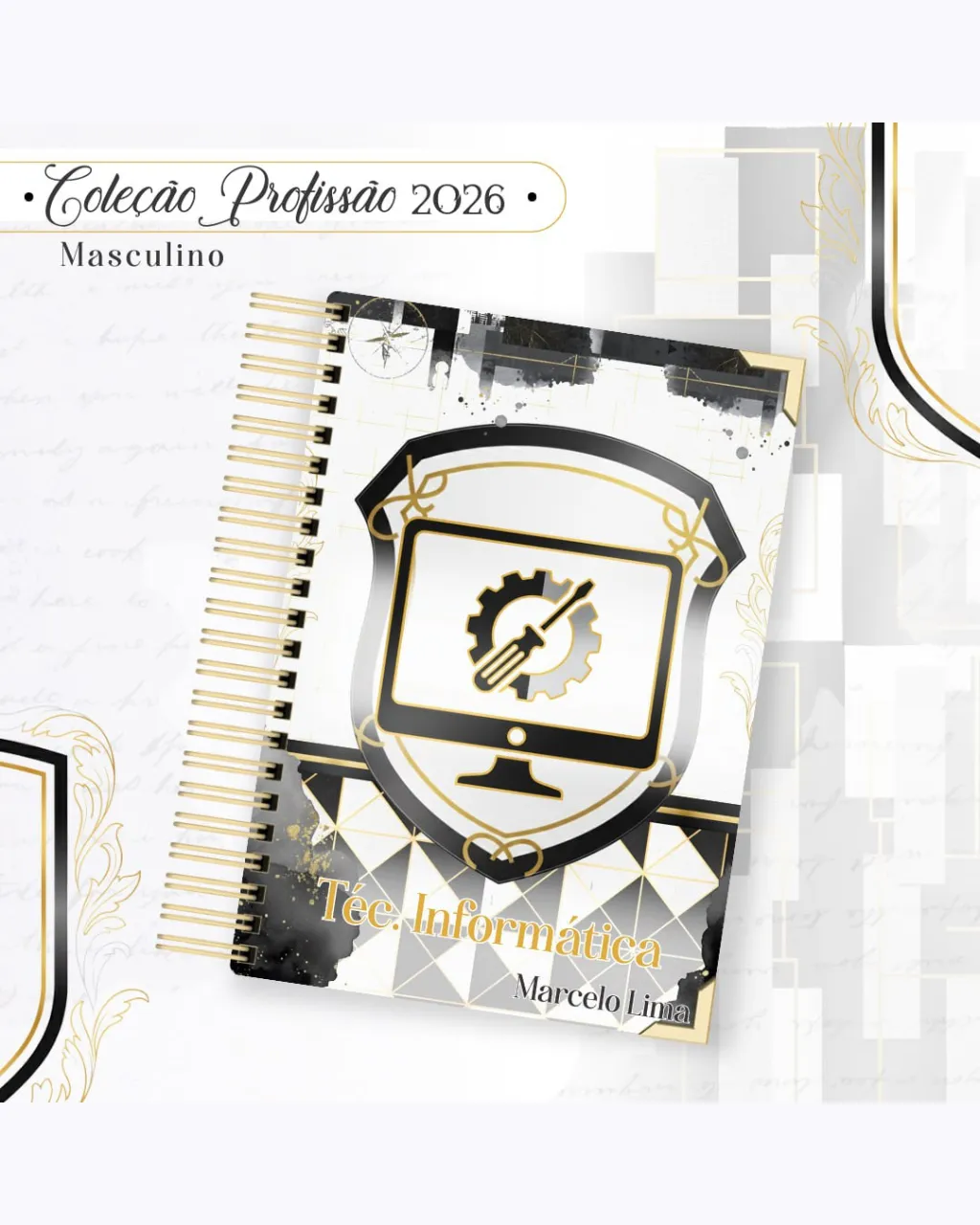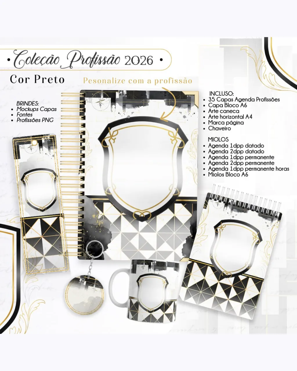 A Coleção Profissão 2026 Masculino Preto – Arquivos da Toke foi criada para valorizar e celebrar diferentes áreas profissionais com estilo e sofisticação. A paleta preta transmite força, elegância e versatilidade, tornando cada material impactante e perfeito para agendas, lembrancinhas e kits personalizados.