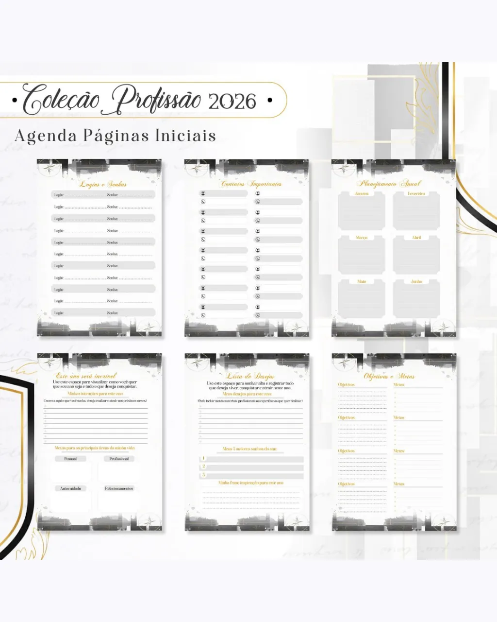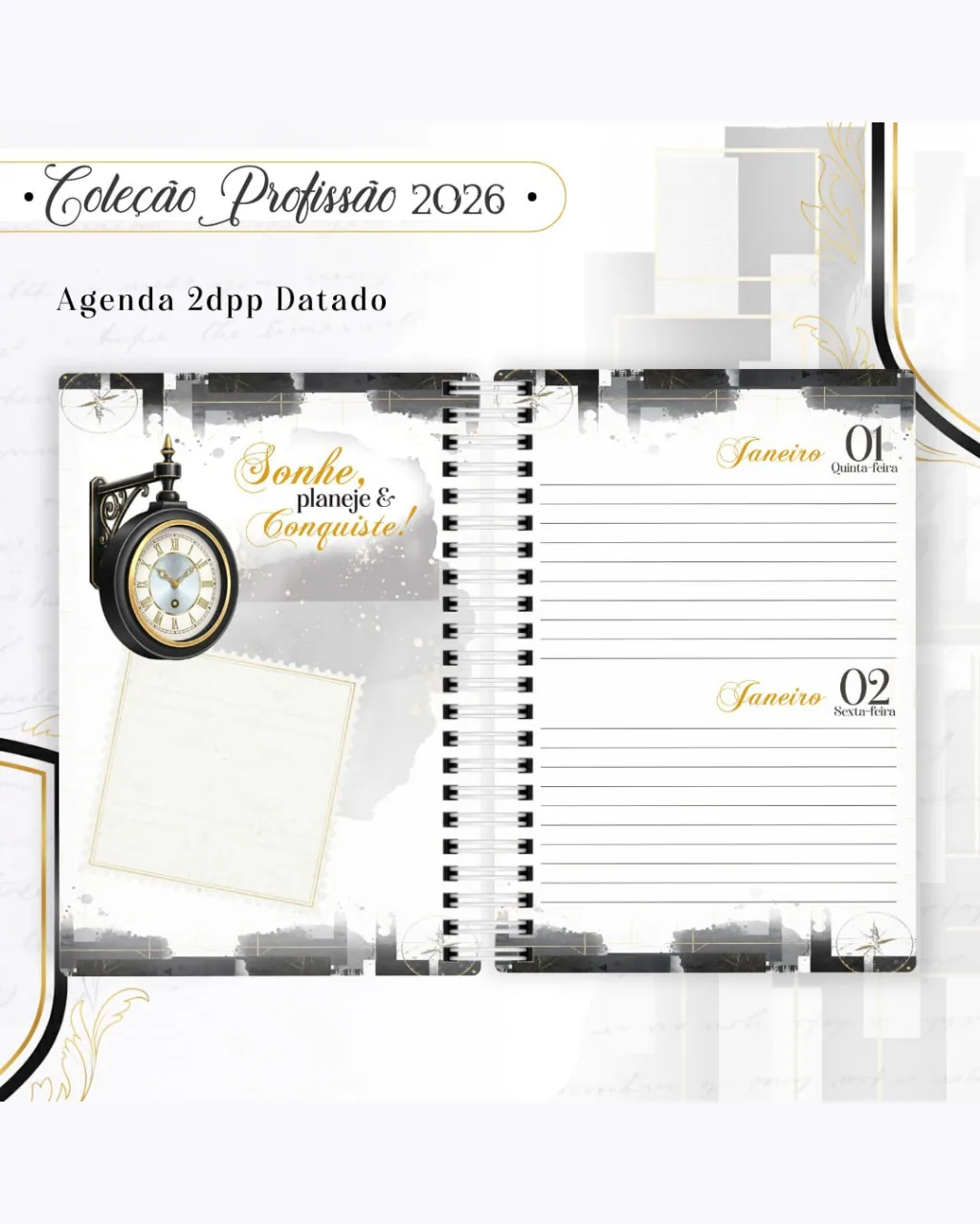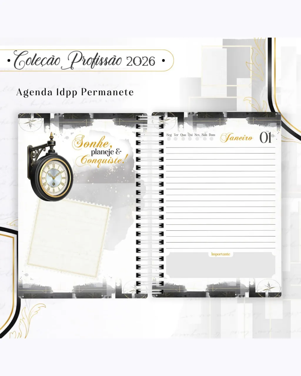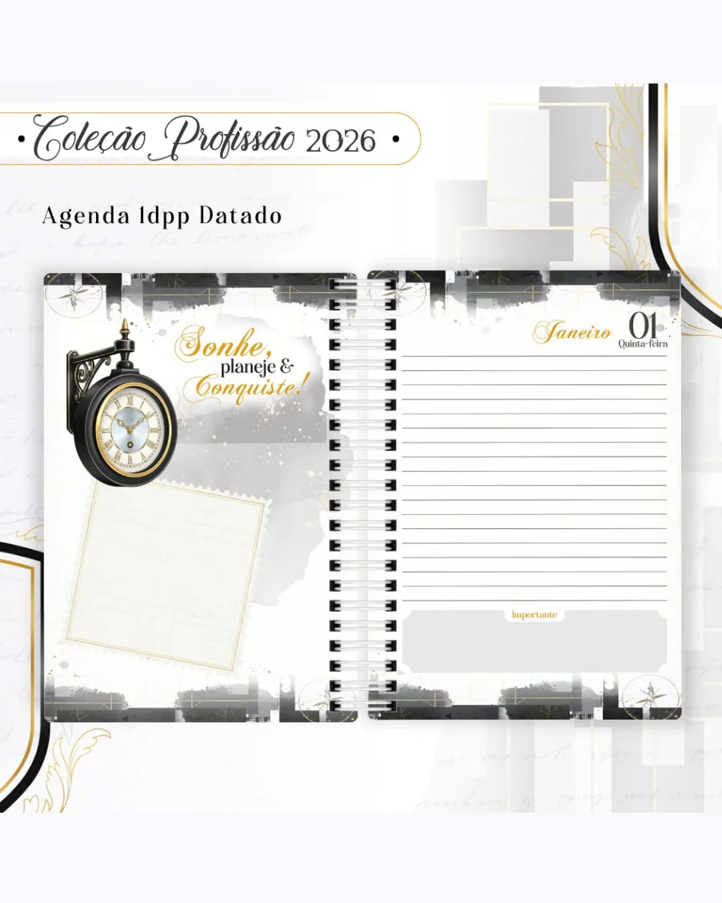 A Coleção Profissão 2026 Masculino Preto – Arquivos da Toke foi criada para valorizar e celebrar diferentes áreas profissionais com estilo e sofisticação. A paleta preta transmite força, elegância e versatilidade, tornando cada material impactante e perfeito para agendas, lembrancinhas e kits personalizados.