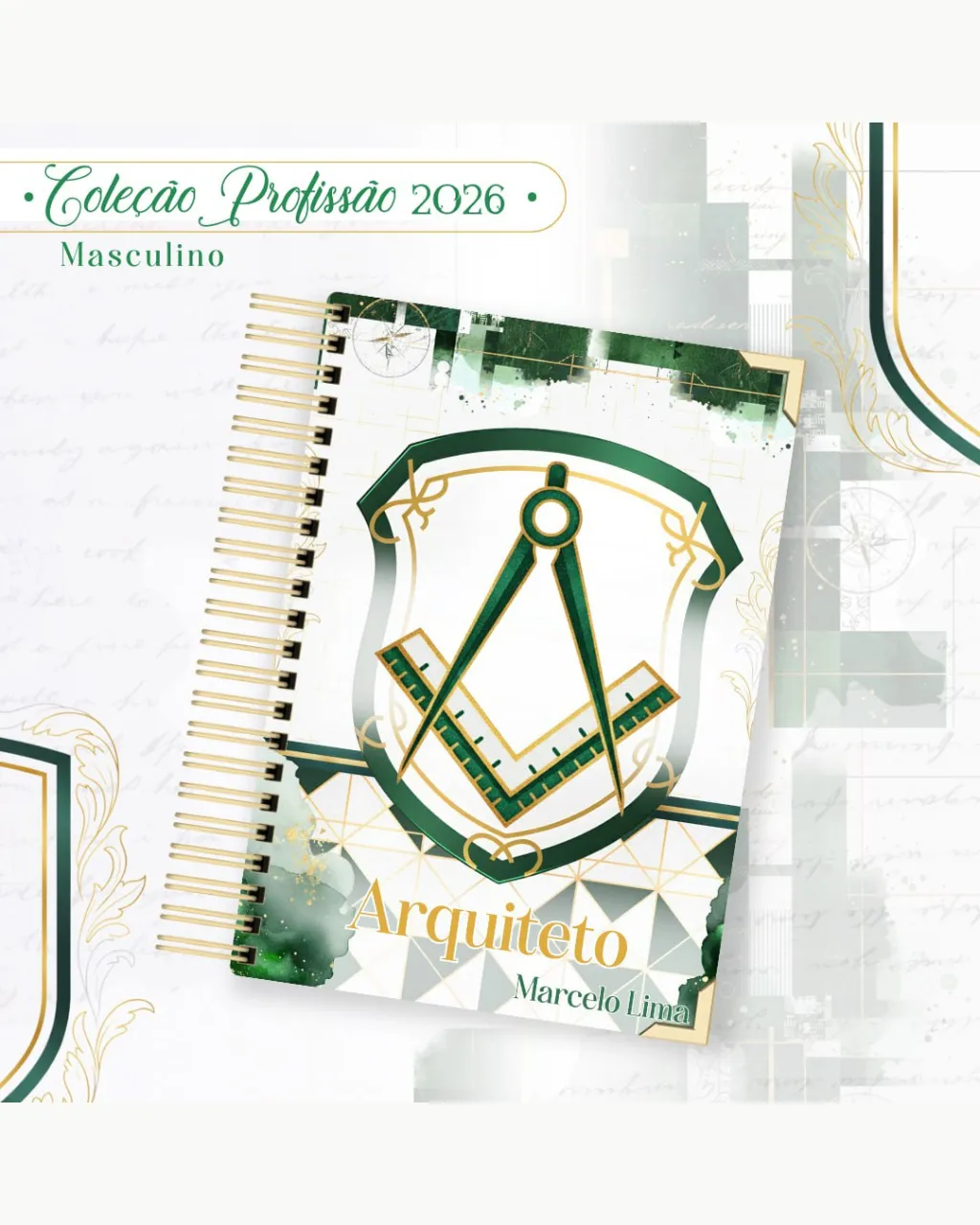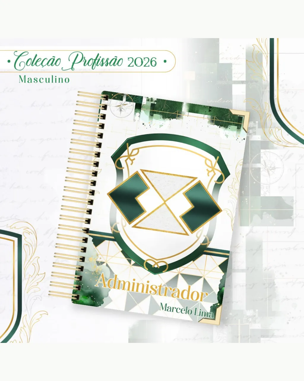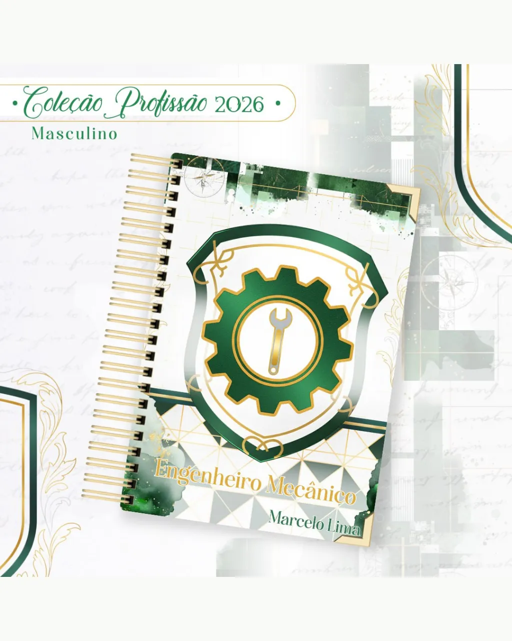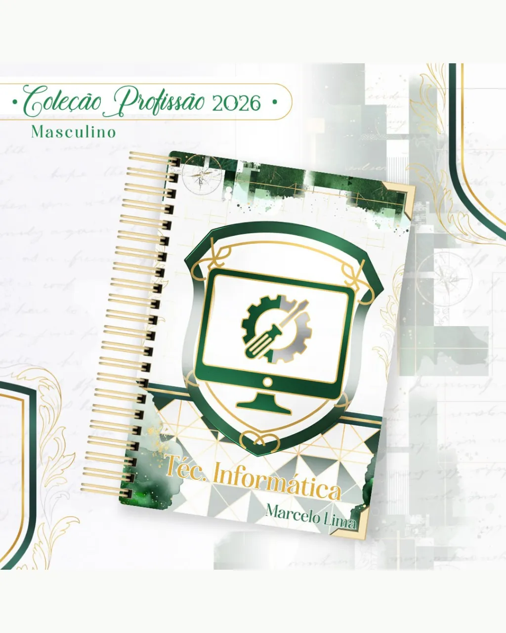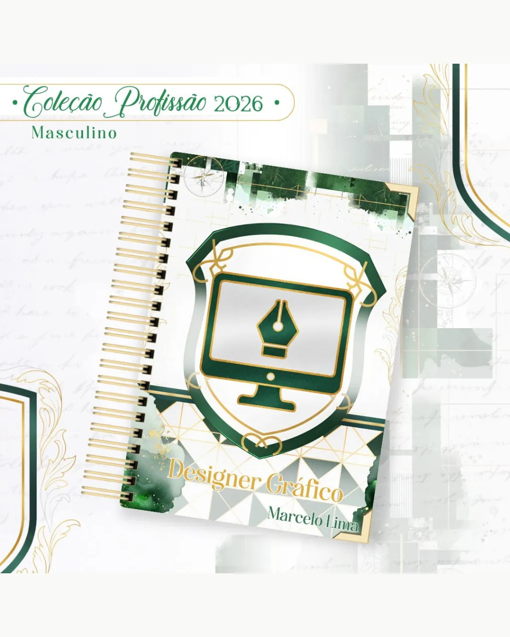 A Coleção Profissão 2026 Masculino Verde – Arquivos da Toke foi criada para valorizar e celebrar diferentes áreas profissionais com estilo e personalidade. A paleta verde transmite equilíbrio, modernidade e energia, tornando cada material versátil e marcante para agendas, lembrancinhas e kits personalizados.