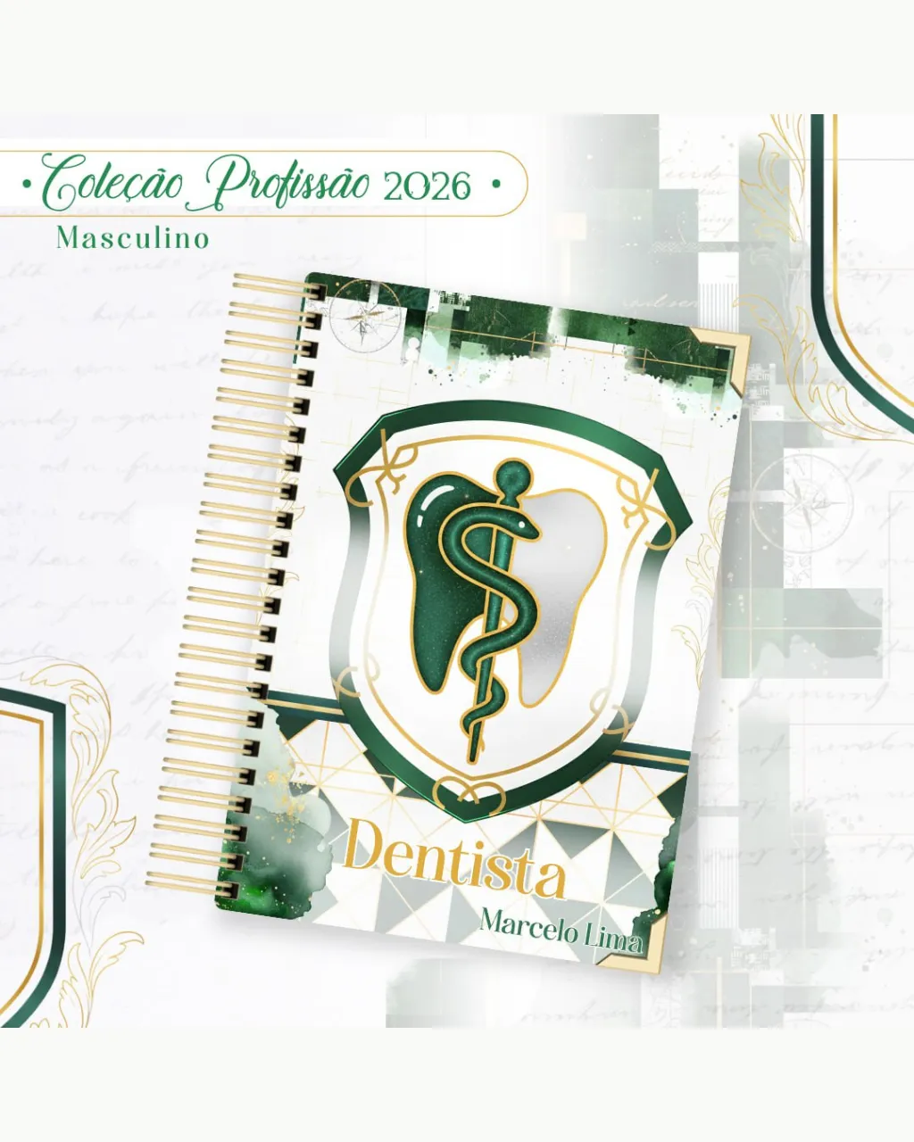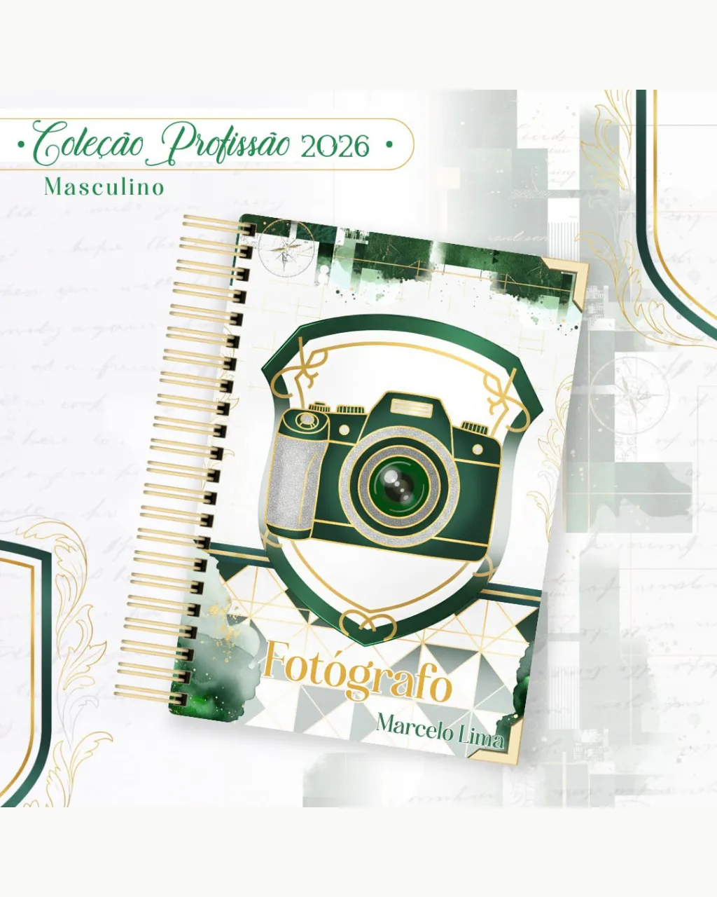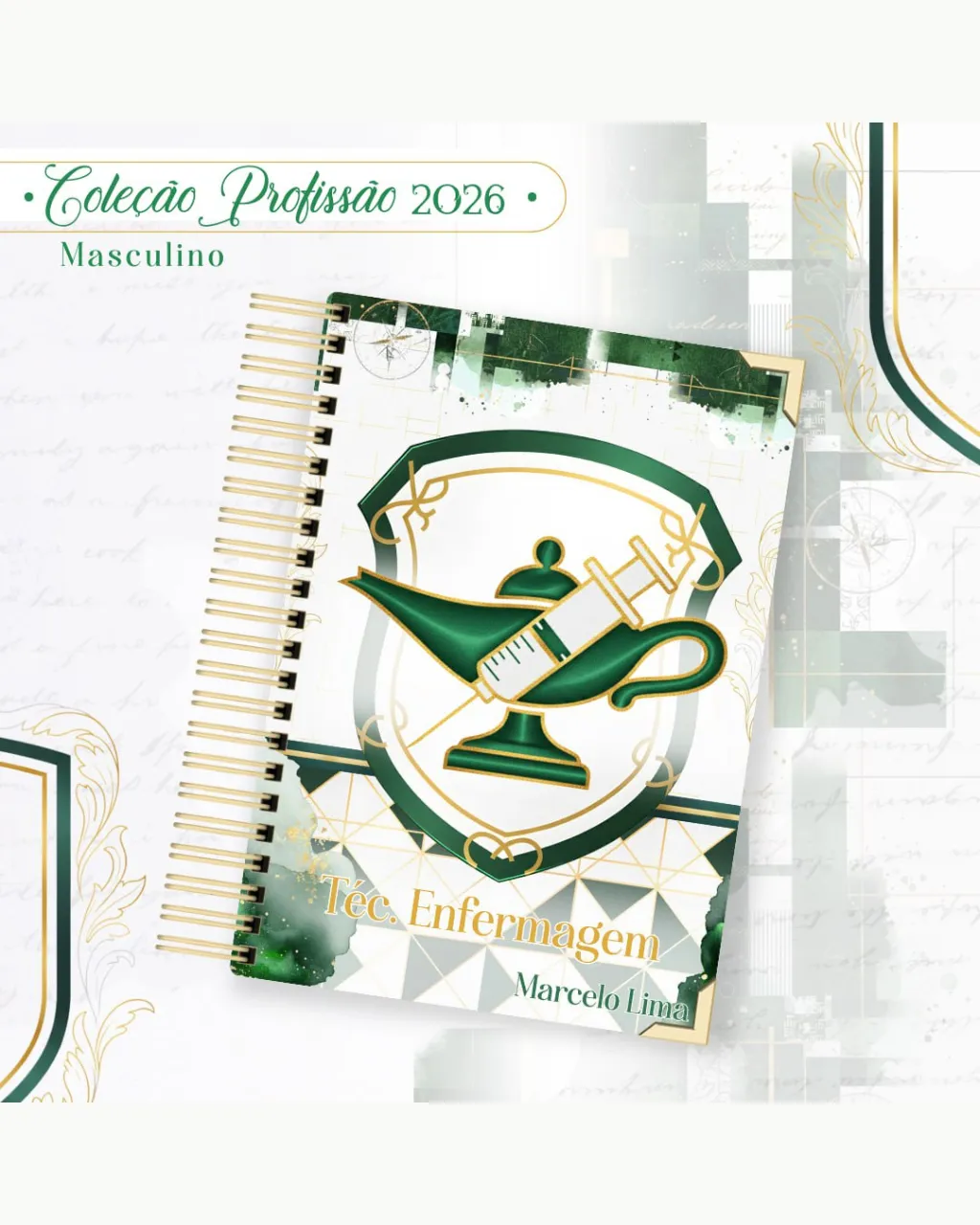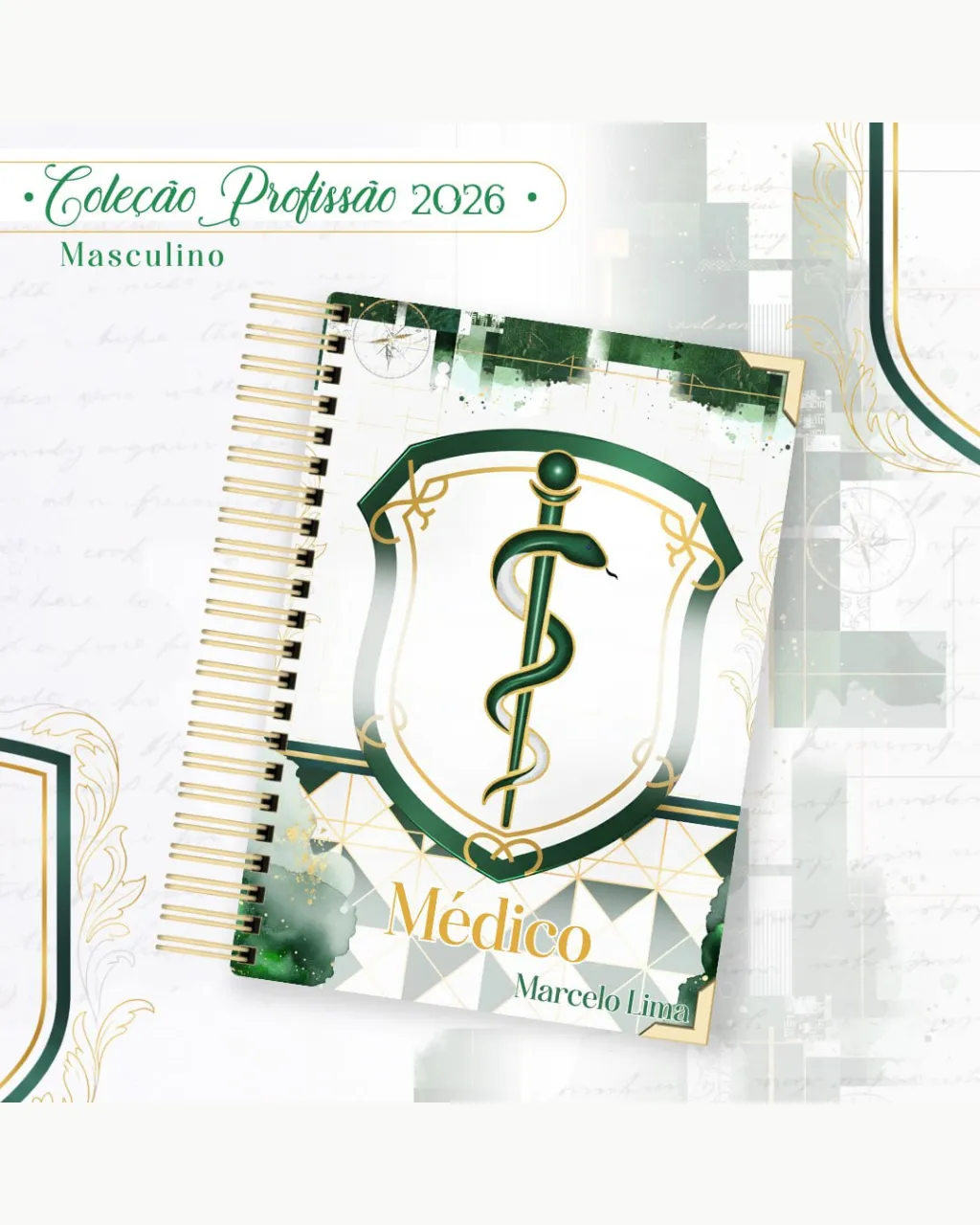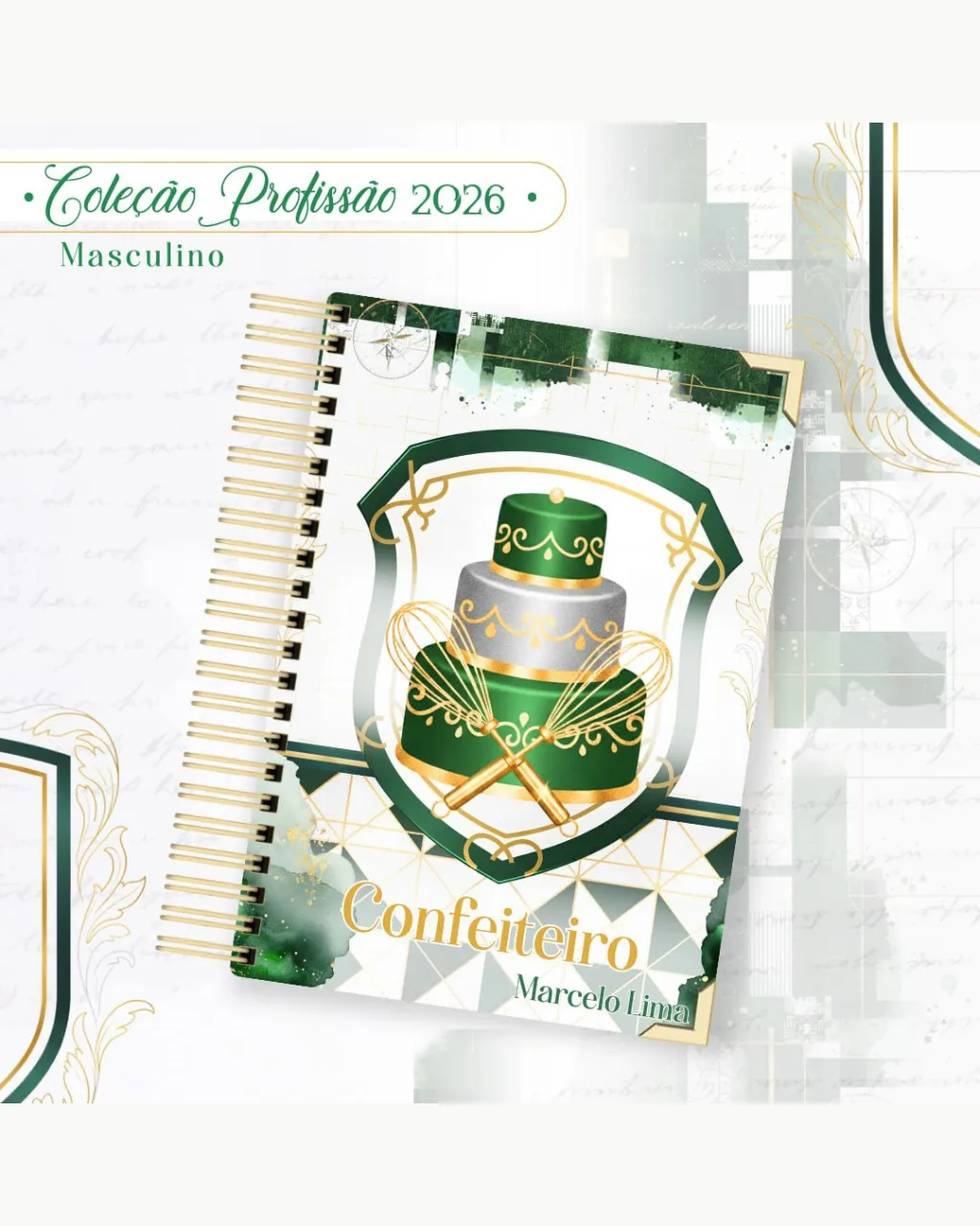 A Coleção Profissão 2026 Masculino Verde – Arquivos da Toke foi criada para valorizar e celebrar diferentes áreas profissionais com estilo e personalidade. A paleta verde transmite equilíbrio, modernidade e energia, tornando cada material versátil e marcante para agendas, lembrancinhas e kits personalizados.